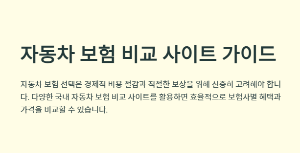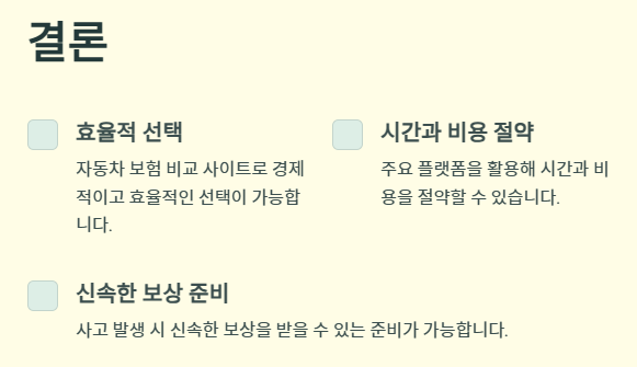 - 추가 정보: 보험료 절감 팁과 소비자 리뷰를 함께 제공하여 신뢰성을 높입니다.
