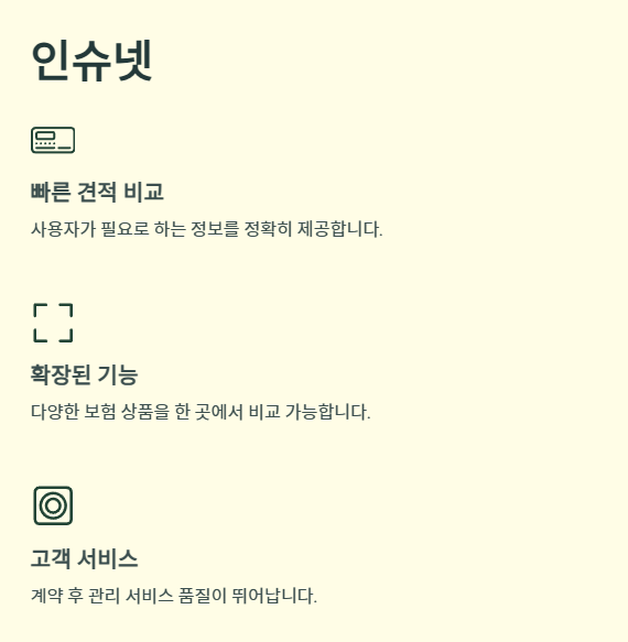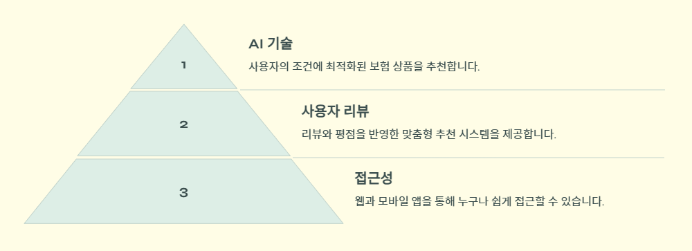 - AI 기술: 사용자의 조건에 최적화된 보험 상품을 추천하며, 효율적이고 정확한 비교를 제공합니다.