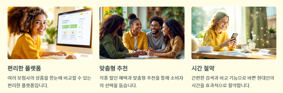 - 시간 절약: 각 보험사를 개별적으로 조사할 필요 없이, 한곳에서 모든 정보를 확인할 수 있습니다.