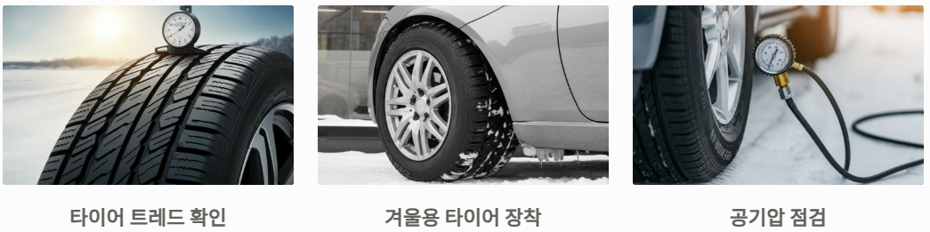 - 겨울용 타이어 장착: 겨울철에는 접지력이 높은 겨울용 타이어로 교체하는 것이 안전합니다.