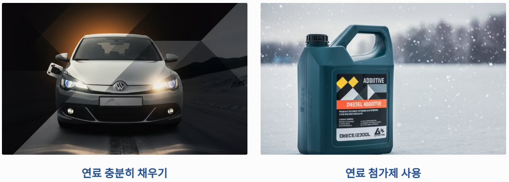 - 연료첨가제 사용: 디젤 차량의 경우 겨울철 동결을 방지하는 첨가제를 사용하는 것이 좋습니다.