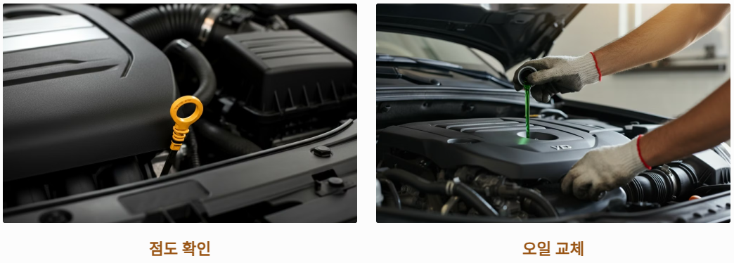 - 오일 교체: 주행거리가 많거나 오일 상태가 나쁘면 교체하세요.