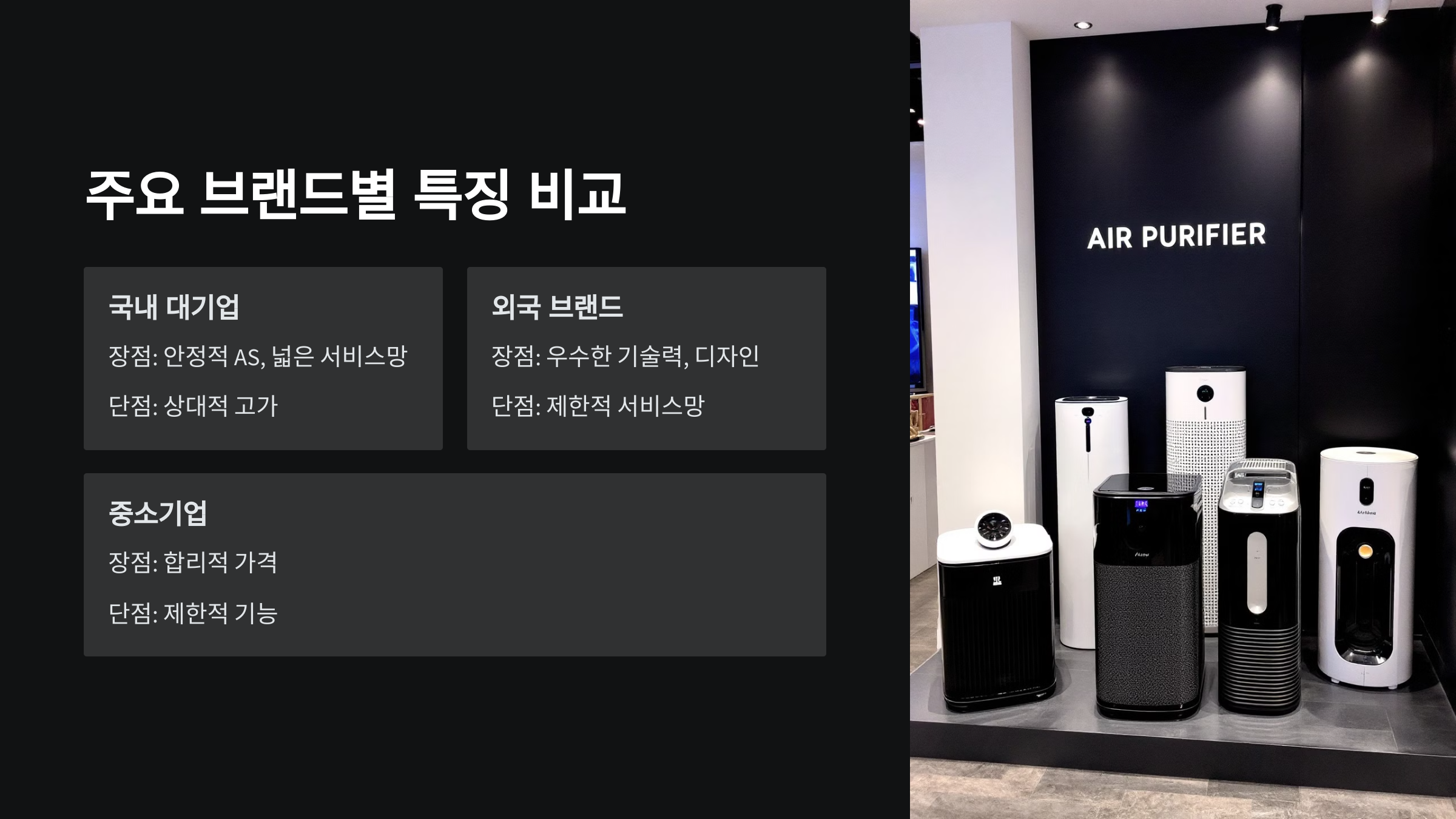 | 국내 대기업 | 안정적 AS, 넓은 서비스망 | 상대적 고가 |