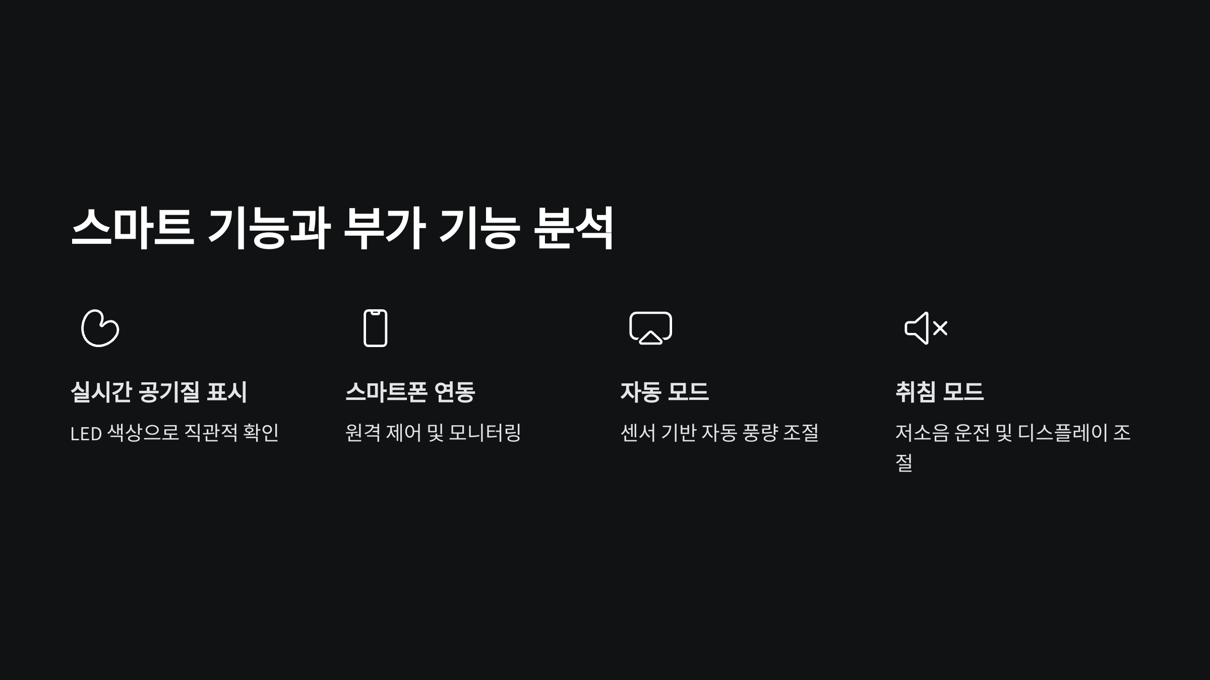 - 자동 모드: 센서 기반 자동 풍량 조절