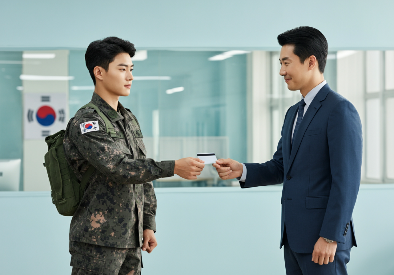 A1: 입대 후 훈련소에서 발급 절차에 대한 안내를 받으며, 신한은행 또는 IBK기업은행 중 선택해 발급 신청을 진행할 수 있습니다.