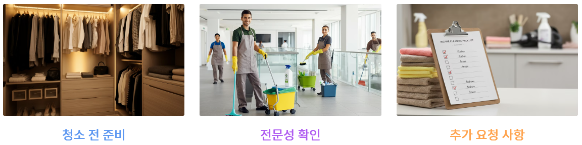 처음 청소 서비스를 이용할 때는 자신의 요구를 명확히 전달하는 것이 중요합니다. 특정 구역의 집중 청소를 원한다면 사전에 전달하세요.