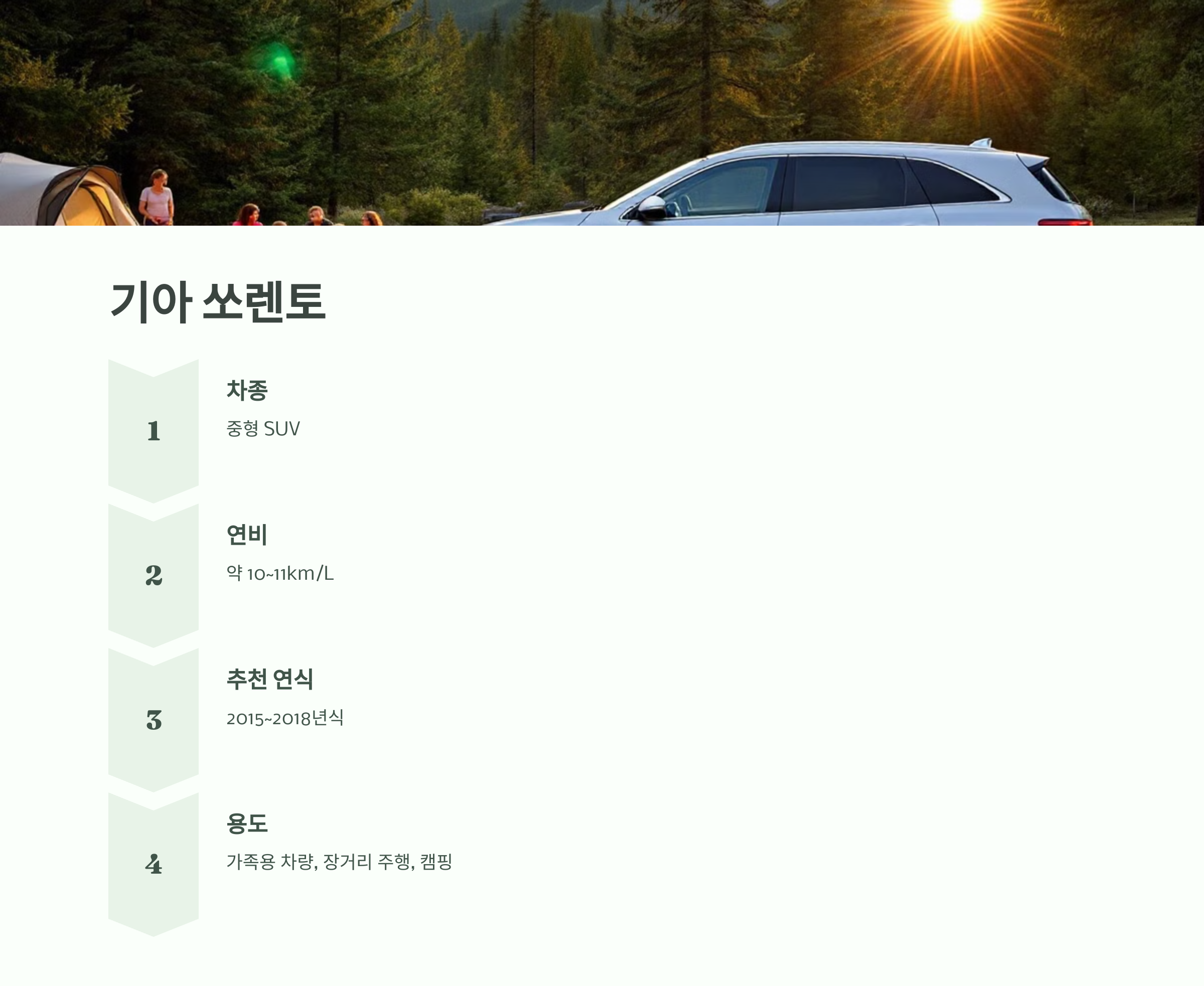 - 적합한 용도: 가족용 차량, 장거리 주행, 캠핑
