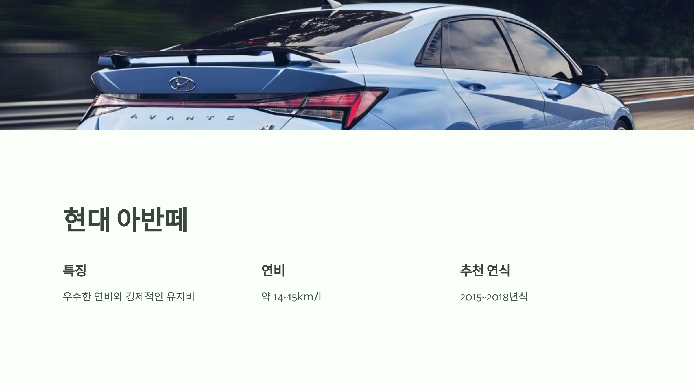 아반떼는 연비와 내구성 모두에서 우수한 평가를 받는 모델로, 장기적인 유지비를 절감하면서 안정성을 유지하고 싶은 소비자에게 적합합니다.