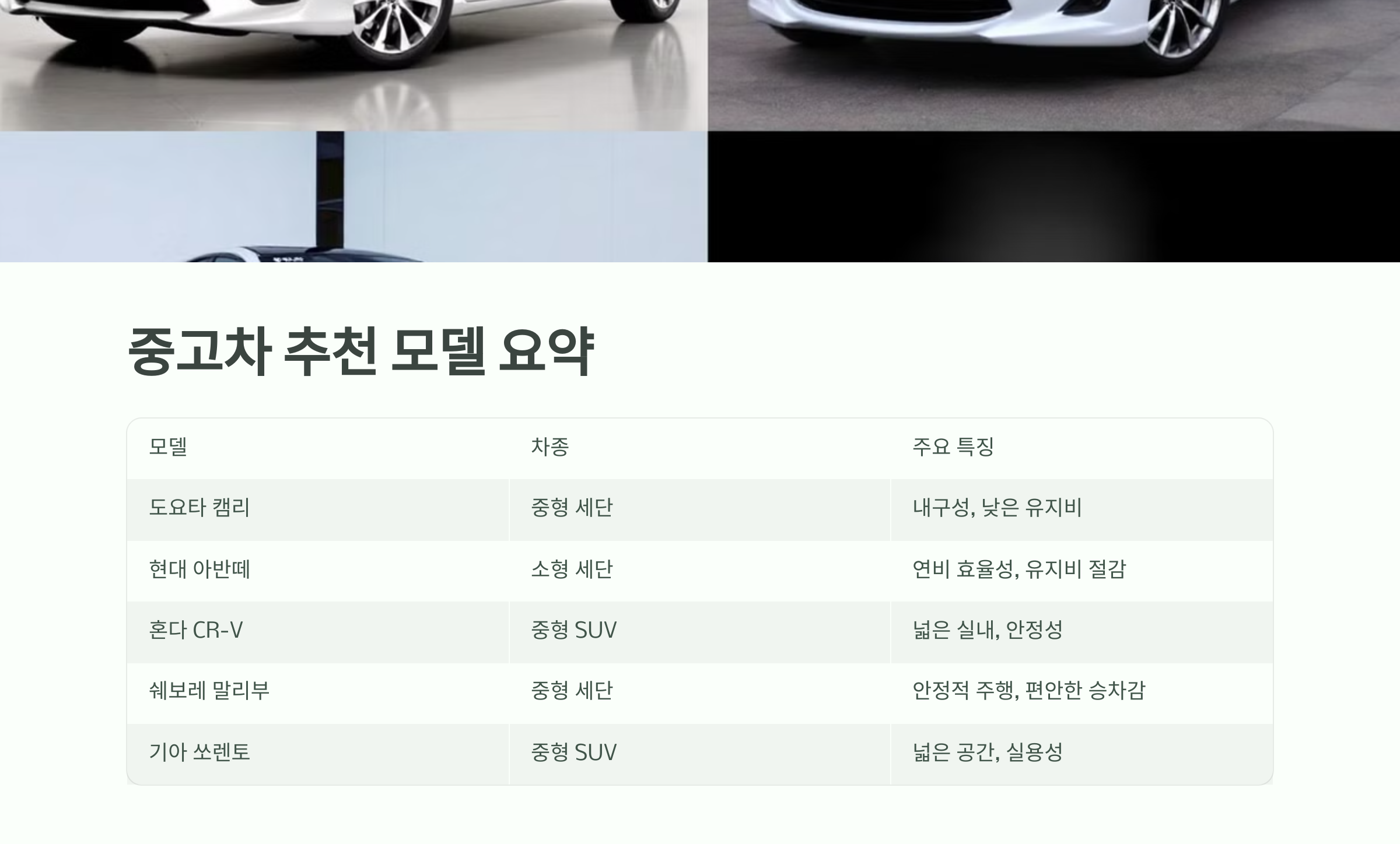 내구성과 유지비를 고려한 중고차 추천 모델 요약