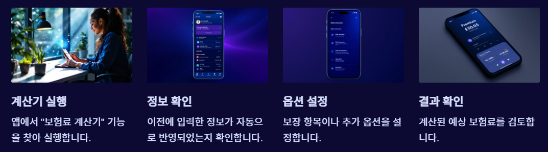 결과를 바탕으로 예상 보험료를 검토하세요.