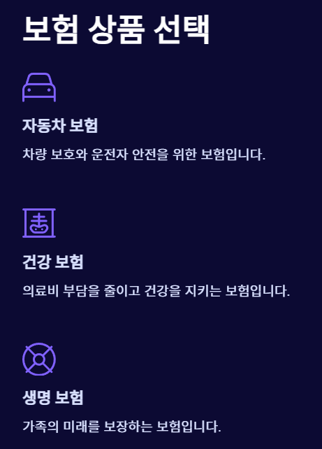 원하는 보험 상품 선택