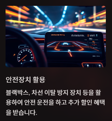 - 블랙박스 설치: 보험료의 3~5% 절감 가능.