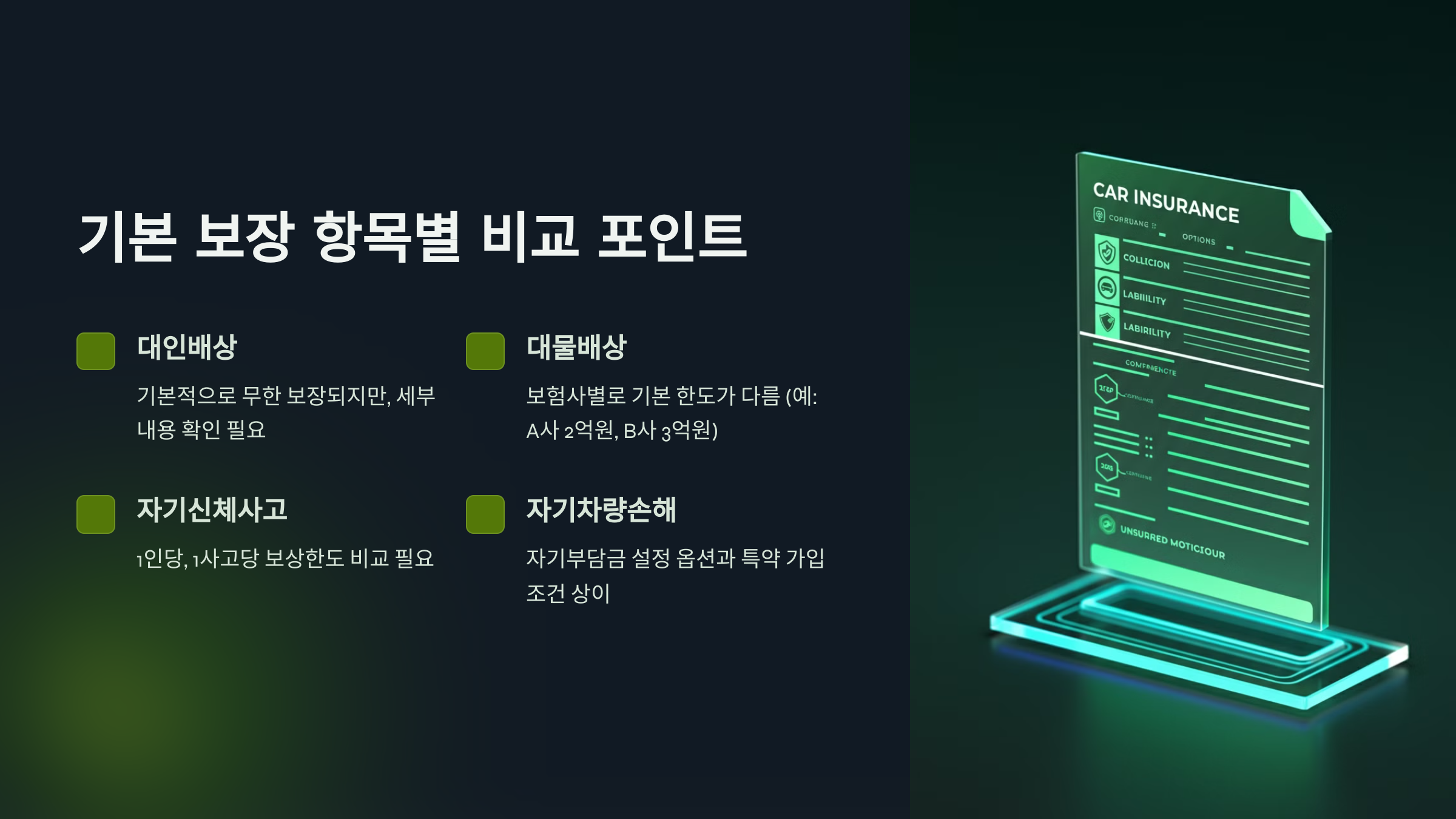 기본 보장 항목별 비교 포인트