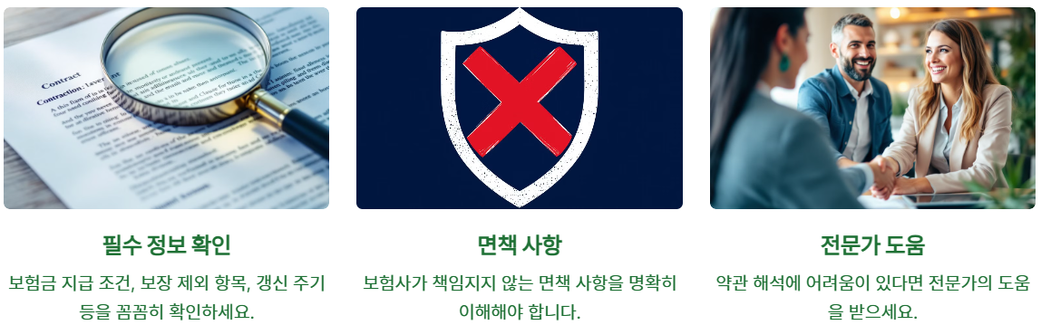 - 조건이 까다롭거나 복잡한 경우, 실제로 보험금을 받기 어려울 수 있습니다.