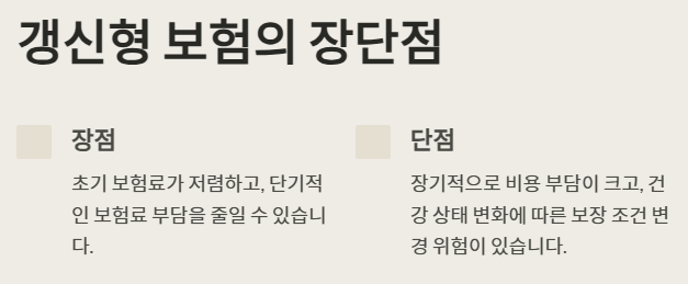 보험 가입 시 갱신 주기가 1년, 5년, 10년 등으로 나뉘는 경우가 많습니다. 짧은 주기보다는 10년 이상의 장기 갱신형을 선택하면 보험료의 변동성을 줄일 수 있습니다. 초기 보험료가 다소 높게 느껴질 수 있지만, 장기적으로 안정적인 보험료를 유지하는 데 유리합니다.
