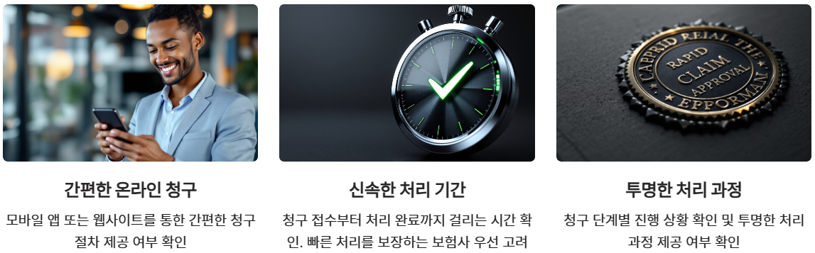 보험 청구 절차가 복잡하지 않고, 빠르고 간단하게 처리될 수 있는지를 확인하세요. 특히 디지털화된 시스템을 통해 온라인 청구가 가능한 보험사를 선택하면 편리합니다.