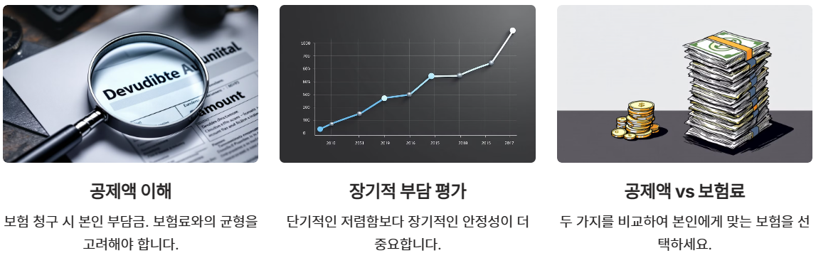 공제액은 보험 청구 시 본인이 부담해야 하는 금액입니다. 보험료와 공제액 사이의 균형을 맞추는 것이 중요합니다. 저렴한 보험료를 가진 상품일수록 공제액이 높아질 가능성이 있으므로 주의가 필요합니다.
