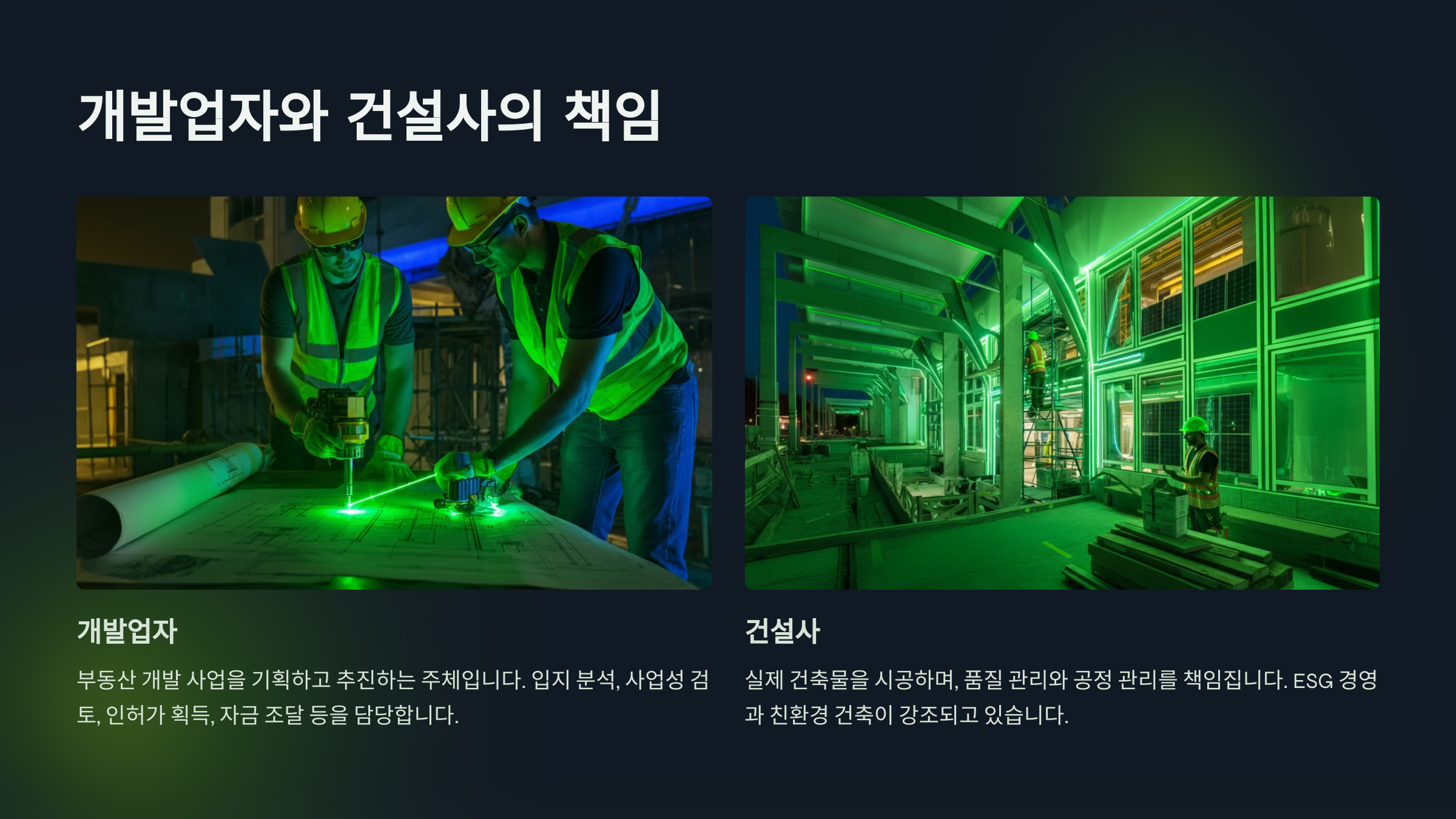 최근에는 ESG 경영과 친환경 건축이 강조되면서 개발업자와 건설사의 사회적 책임이 커지고 있습니다. 스마트시티, 제로에너지 건축 등 새로운 트렌드에 대응하는 것도 중요한 과제가 되었습니다. 이는 경제 성장과의 관계에서도 중요한 의미를 가집니다.