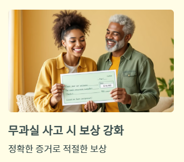 블랙박스가 없으면 과실 비율을 입증하기 어려워 피해를 입은 상황에서도 보상이 제한될 수 있습니다. 블랙박스를 설치하면 무과실 사고임을 증명할 가능성이 높아져 보험사로부터 적절한 보상을 받을 수 있습니다.