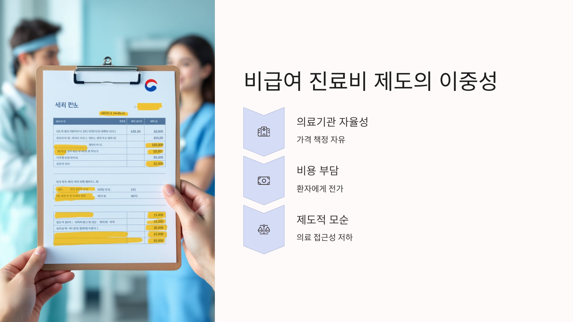 한국 의료 시스템의 근간을 이루는 비급여 진료비 제도는 '의료의 질 향상'과 '의료기관의 경영 자율성 보장'이라는 명목 하에 운영되어 왔습니다. 그러나 이 제도는 근본적으로 상반된 두 가치—공공재로서의 의료와 시장 상품으로서의 의료—사이의 모순적 공존을 반영합니다.