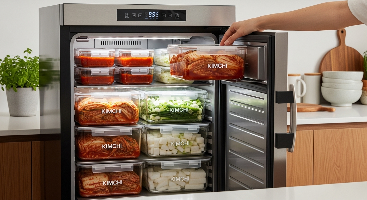 두 번째는 '수납 효율성'이에요. 스탠드형은 서랍식이라 공간 활용이 정말 좋아요. 각 서랍마다 다른 종류의 김치를 보관할 수 있고, 한눈에 뭐가 어디 있는지 파악이 돼요. 뚜껑형처럼 위에서 아래로 쌓아두는 게 아니라서, 맨 아래 있는 김치통을 꺼내려고 위에 것들을 다 들어내는 번거로움이 없어요.