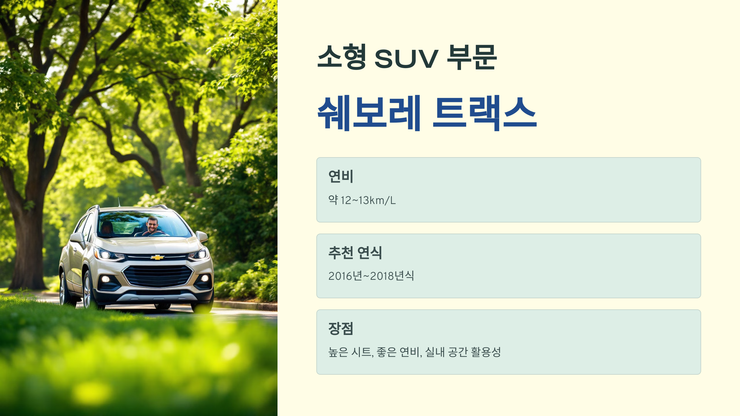 - 주요 장점: 높은 시트 위치, 좋은 연비, 실내 공간 활용성