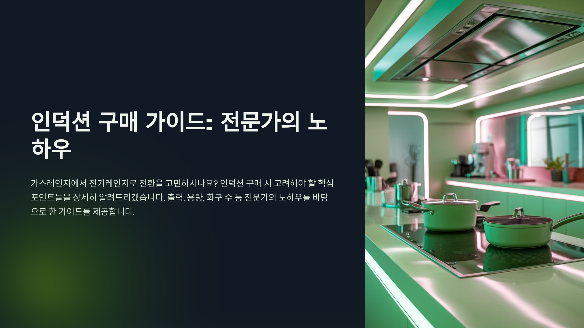 인덕션 구매를 고민하고 계신가요? 가스레인지에서 전기레인지로의 전환을 결정했다면, 이제 제품 선택만 남았습니다. 하지만 막상 구매하려고 보니 출력, 용량, 화구 수 등 고려할 사항이 너무 많아 망설여지시죠. 오늘은 전문가의 노하우를 바탕으로 인덕션 구매시 꼭 확인해야 할 핵심 포인트들을 상세히 알려드리겠습니다.