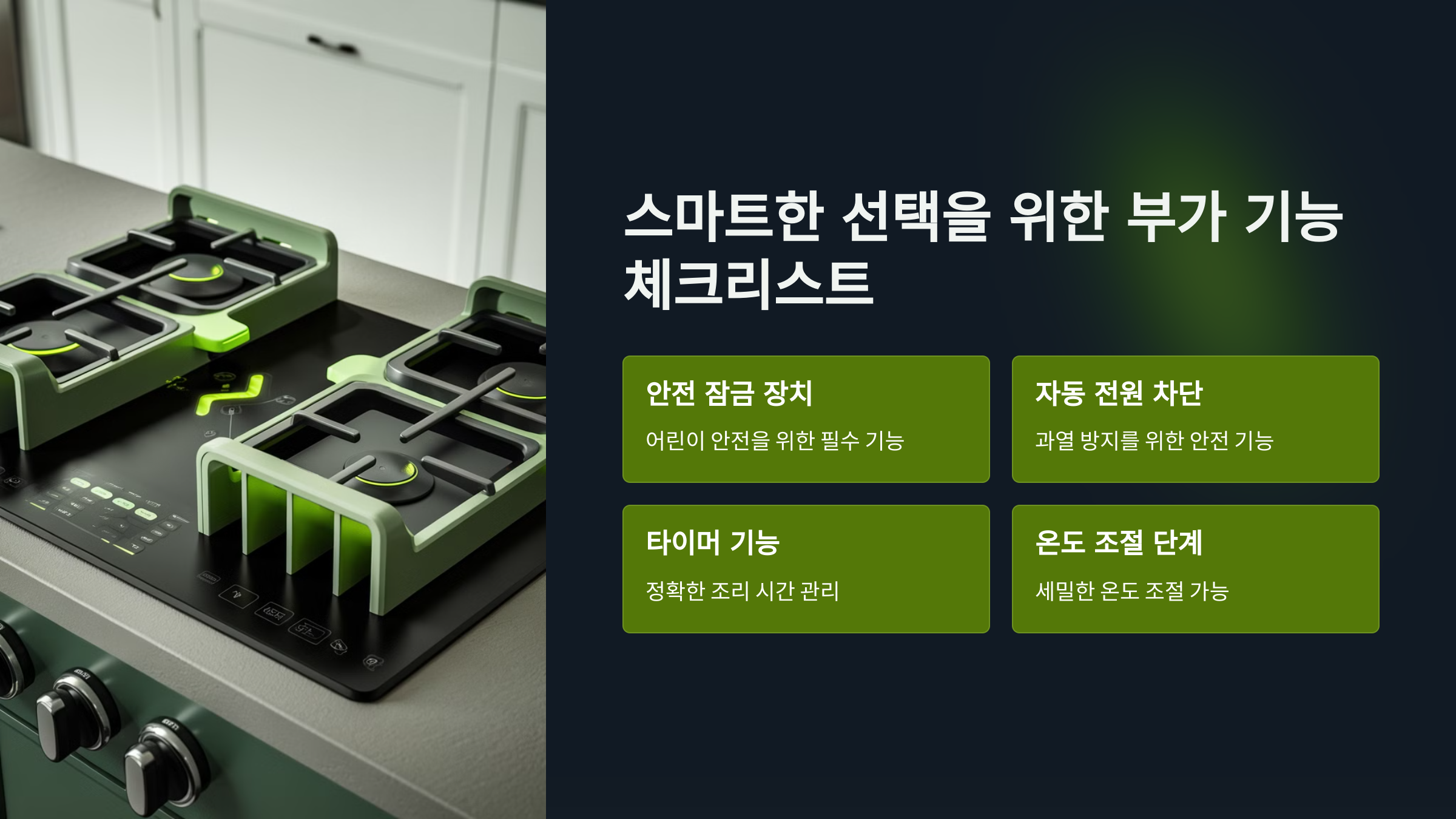 현대의 인덕션은 다양한 스마트 기능을 제공합니다. 안전 잠금 장치와 자동 전원 차단 기능은 필수적인 안전 기능입니다. 온도 조절의 정확성과 타이머 기능은 요리의 편의성을 높여줍니다. 이러한 부가 기능들은 실제 사용시 큰 도움이 됩니다. 하지만 불필요한 기능에 과도한 비용을 지불하지 않도록 주의해야 합니다.