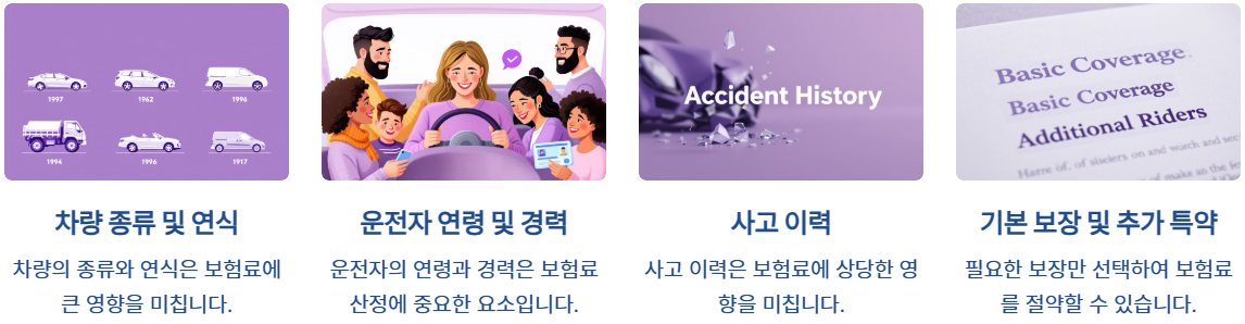 자동차 보험료는 여러 요소에 따라 달라집니다. 차량 종류, 연식, 운전자의 연령, 운전 경력, 사고 이력 등이 중요한 요소로 작용합니다. 따라서 자신의 조건에 맞는 보험료를 산출하기 위해 각 보험사의 기준을 이해하는 것이 중요합니다.