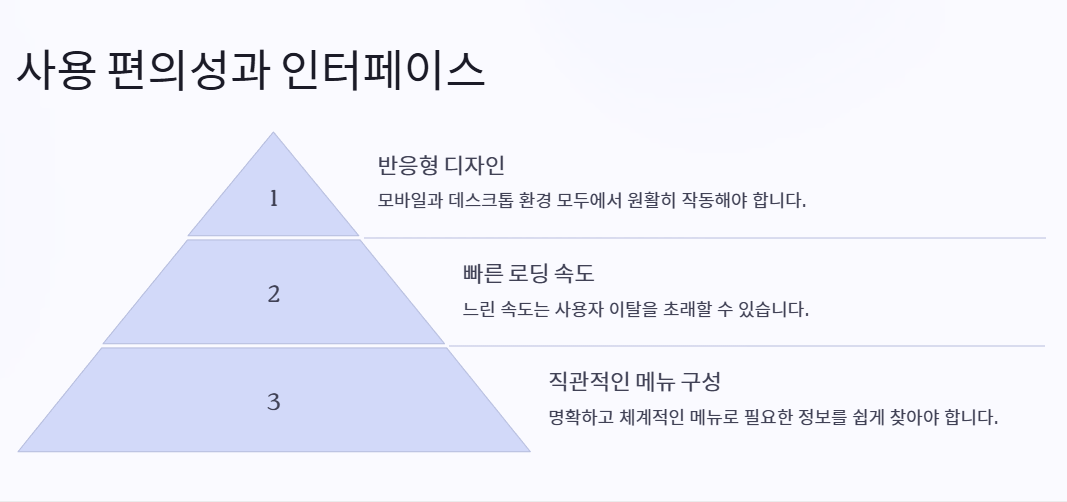 - 검색 속도와 반응성이 빠른 플랫폼은 특히 바쁜 현대인들에게 큰 장점입니다. 느린 로딩 속도는 사용자 이탈을 초래할 수 있습니다.