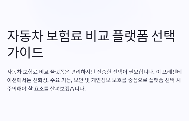 자동차 보험료 비교 플랫폼은 다양한 보험 상품을 간편하게 비교하고 자신에게 맞는 최적의 상품을 찾을 수 있는 혁신적인 서비스입니다. 그러나 플랫폼의 품질과 신뢰성을 신중히 고려하지 않으면 불필요한 리스크에 노출될 수 있습니다. 이번 글에서는 플랫폼 선택 시 반드시 주의해야 할 요소인 신뢰성, 주요 기능, 보안 및 개인정보 보호를 중심으로 구체적인 팁을 제공하겠습니다.