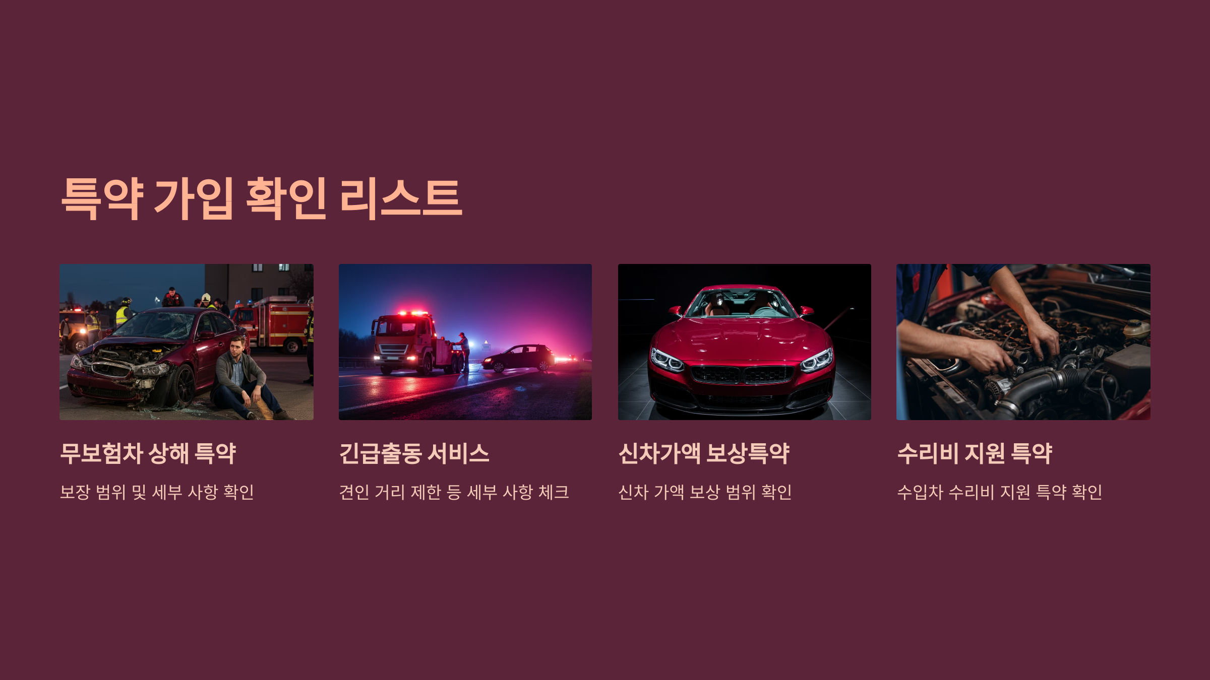차량 용도와 운행 패턴에 맞는 특약이 모두 포함되었는지 확인해야 합니다. 자주 있는 실수 사례로, 무보험차 상해 특약을 누락하거나 긴급출동 서비스의 보장 범위를 제대로 확인하지 않는 경우가 있습니다. 실제 사례를 보면, A씨는 장거리 운전이 잦았음에도 긴급출동 서비스의 견인 거리 제한을 확인하지 않아 추가 비용을 부담한 경우가 있었습니다.