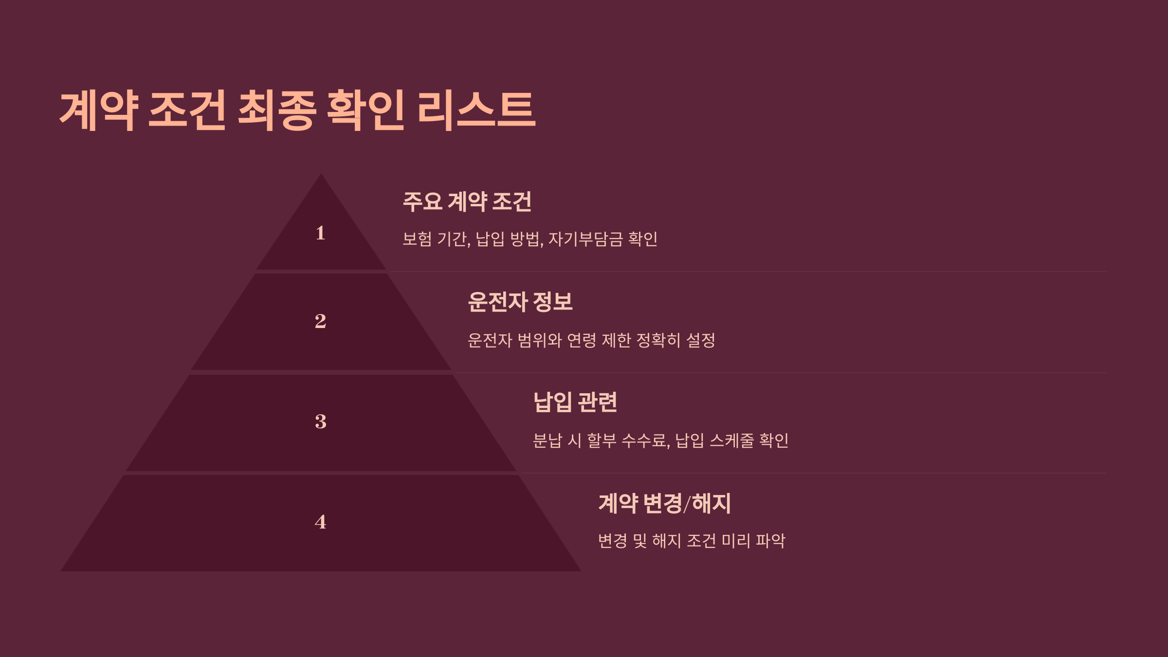 계약서 작성 전 모든 내용을 다시 한번 점검해야 합니다. 보험 기간, 납입 방법, 자기부담금 등 주요 계약 조건을 확인하고, 특히 운전자 범위와 연령 제한이 정확히 설정되었는지 살펴봐야 합니다. D씨의 경우, 운전자 연령 제한을 실수로 높게 설정하여 불필요한 보험료를 납부한 사례가 있었습니다.