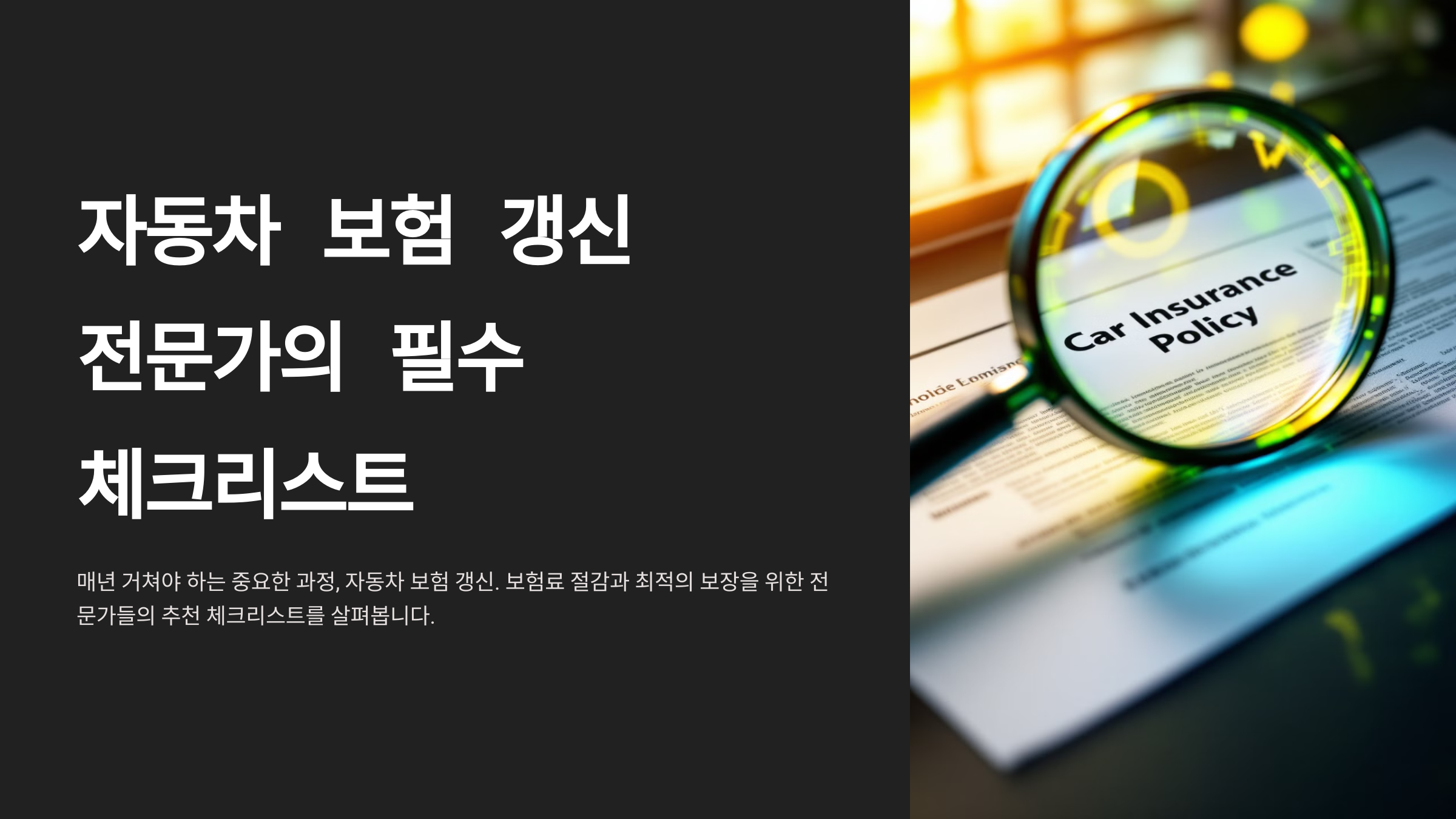 자동차 보험 갱신은 차량 운전자라면 누구나 매년 거쳐야 하는 중요한 과정입니다. 보험료 절감과 최적의 보장을 위해서는 갱신 전 꼼꼼한 조건 확인이 필수적입니다. 이번 가이드에서는 보험 전문가들이 추천하는 필수 체크리스트를 상세히 살펴보고, 보험 갱신 과정에서 놓치기 쉬운 중요 포인트들을 자세히 알아보겠습니다.