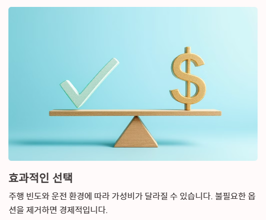 주행 빈도와 운전 환경에 따라 가성비가 달라질 수 있습니다.