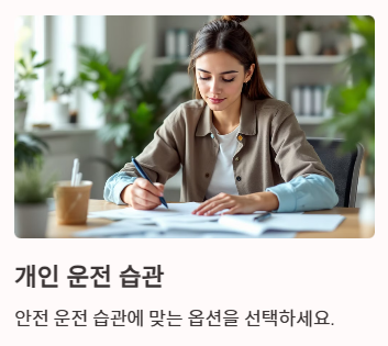운전 환경에 따른 맞춤형 보험 설계가 가능합니다.