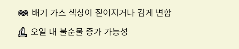 배기 가스 색이 평소보다 짙어지거나 검게 변하면, 엔진오일 상태가 좋지 않거나 엔진에 문제가 있을 가능성이 있습니다. 이는 오일이 불순물로 가득 차 있음을 의미하므로, 빠른 점검이 필요합니다.