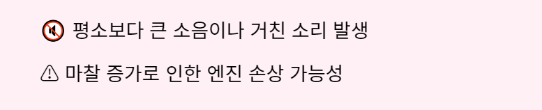 엔진에서 평소보다 큰 소음이나 거친 소리가 들리면, 이는 오일이 제 역할을 하지 못하고 있음을 나타낼 수 있습니다. 마찰이 심해지면 엔진 손상으로 이어질 수 있으므로, 오일 교체를 고려해야 합니다.