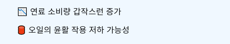 엔진오일이 열화되면 연비가 저하될 수 있습니다. 평소보다 연료 소비가 갑자기 증가한다면, 오일이 충분히 윤활 작용을 하지 못하는 경우일 수 있으니 오일 상태를 점검하고 필요 시 교체해야 합니다.