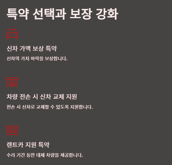 자차 보험의 기본 보장 외에도 다양한 특약을 통해 보장 범위를 확대할 수 있습니다. 대표적인 특약으로는 신차 가액 보상 특약, 차량 전손 시 신차 교체 지원 특약, 렌트카 지원 특약 등이 있습니다. 차량의 연식과 운행 조건에 따라 필요한 특약을 선택적으로 가입하면 더욱 든든한 보장을 받을 수 있습니다. 특히 신차의 경우 차량 가치 하락을 보상하는 특약을 고려해볼 만합니다. 또한 고가 차량의 경우 부품 수리나 교체 비용이 높기 때문에 적절한 특약 선택이 중요합니다.