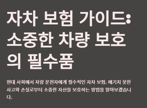 자차 보험은 현대 사회에서 차량 운전자가 반드시 고려해야 할 중요한 보험 상품입니다. 예기치 못한 사고와 손실로부터 소중한 자산을 보호하기 위해서는 적절한 보험 가입이 필수적입니다. 이 가이드에서는 자차 보험이 꼭 필요한 상황과 최적의 보험 상품을 선택하는 방법에 대해 상세히 알아보겠습니다.