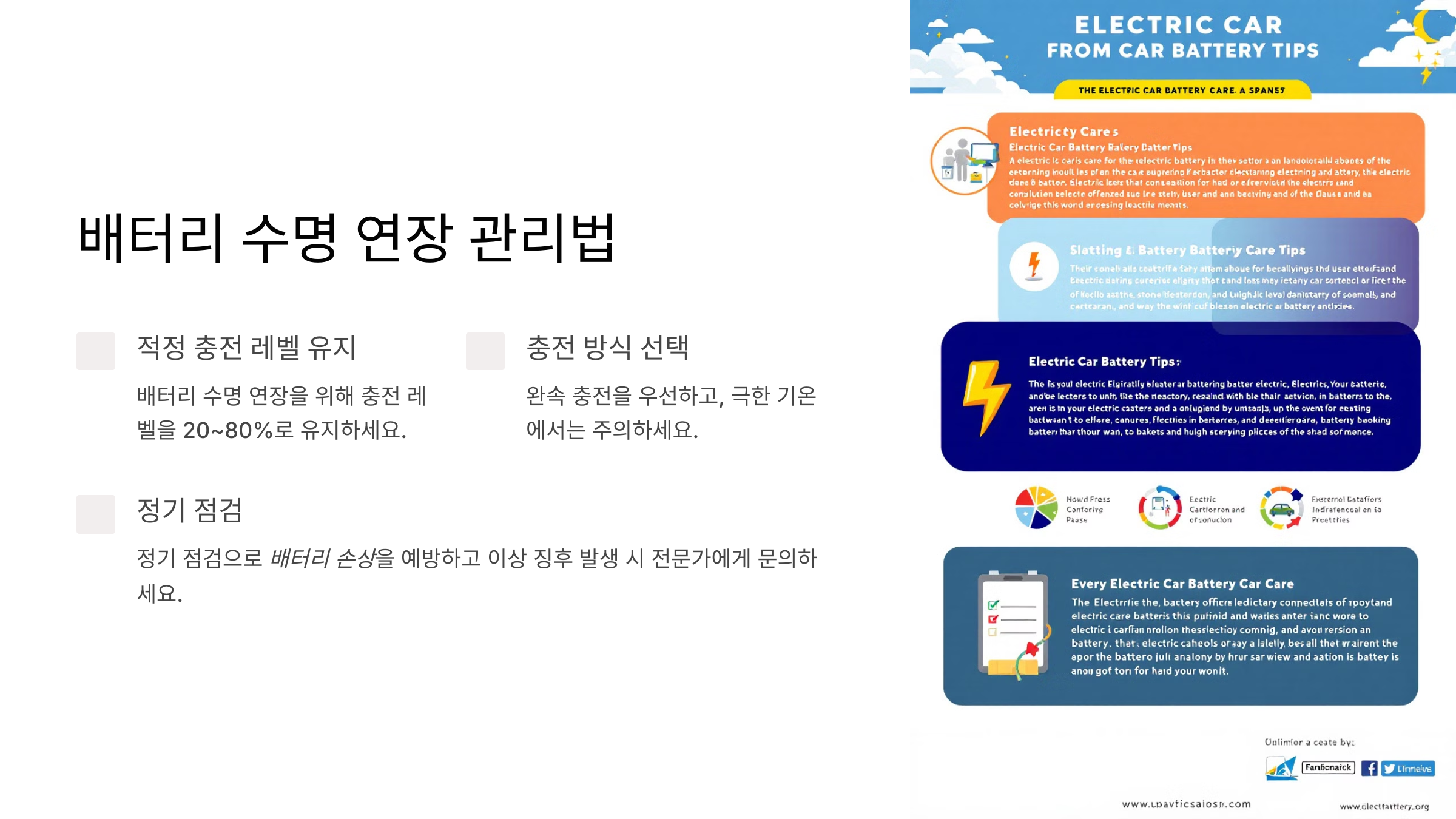 전기차 배터리 보장과 관련하여 가장 중요한 것은 사전 준비입니다. 차량 구매 시점부터 보증 조건을 꼼꼼히 확인하고, 필요한 경우 추가적인 보험 보장을 고려해야 합니다. 특히 중고 전기차 구매 시에는 남은 보증 기간과 배터리 상태 확인이 필수적입니다. 또한 차량의 모든 정비와 수리는 공식 서비스센터나 인증된 정비소를 통해 진행하여 기록을 남기는 것이 좋습니다.