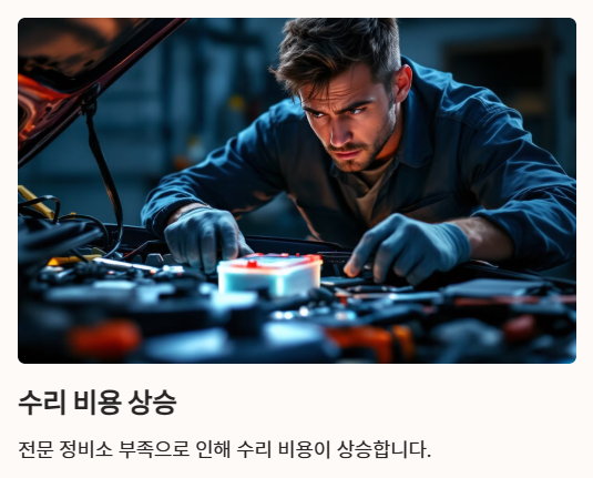 전문 정비소 부족으로 인한 높은 수리 비용