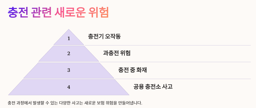 공용 충전소에서의 사고나 가정용 충전 설비 문제로 인한 피해도 새로운 보험 위험으로 등장했습니다. 충전 인프라가 확대되면서 이와 관련된 보험 보장 범위도 계속해서 진화하고 있습니다.