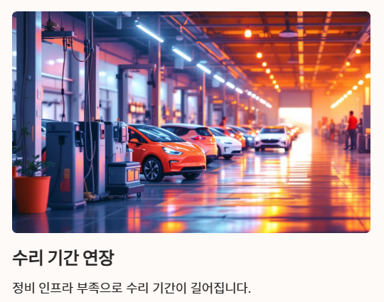 정비 인프라의 부족은 수리 기간 연장으로도 이어져, 대차 비용 증가의 원인이 되고 있습니다. 전기차 제조사들은 전문 정비망 확충을 위해 노력하고 있지만, 당분간은 이러한 상황이 보험료 상승 요인으로 작용할 것으로 예상됩니다.