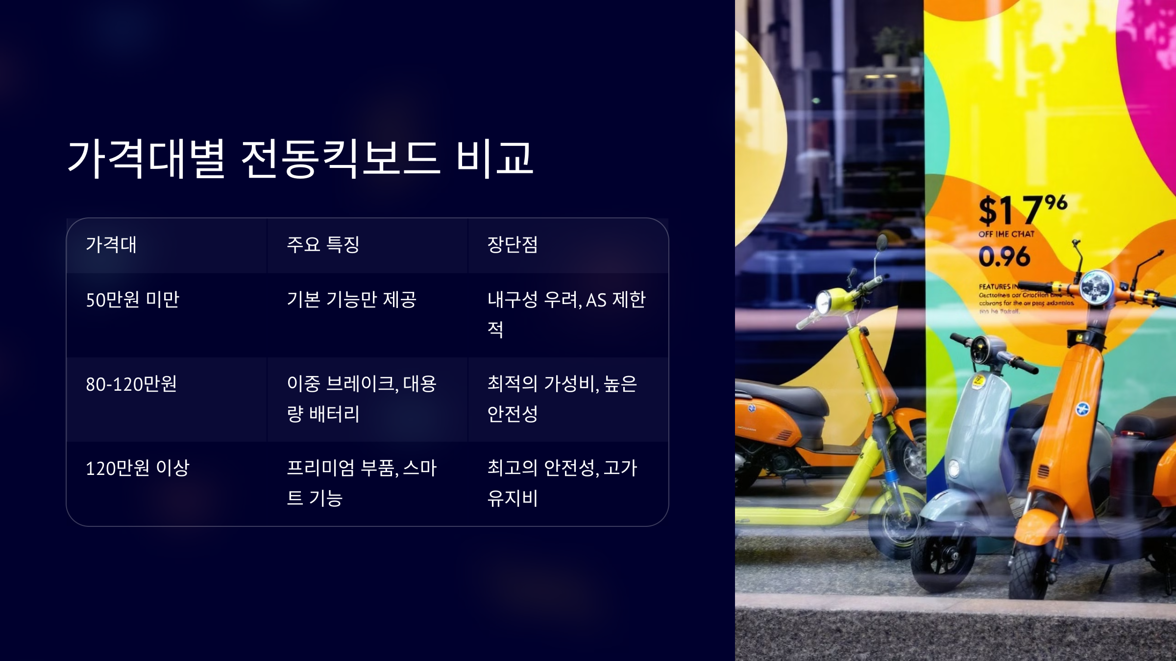 | 80-120만원 | 이중 브레이크, 대용량 배터리 | 최적의 가성비, 높은 안전성 |