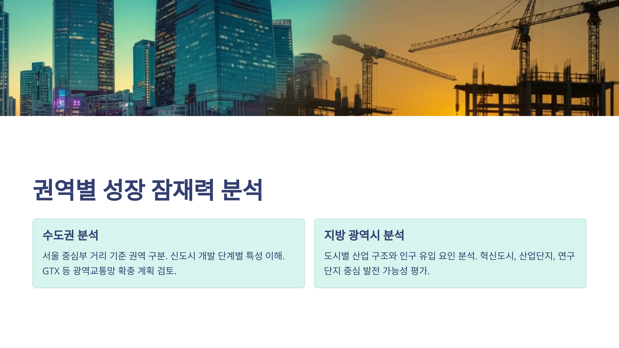 주거용 부동산 시장에서 성공적인 투자를 위해서는 인기 지역을 체계적으로 분석하고 선정하는 것이 핵심입니다. 아파트와 단독주택의 투자 비교에서 설명한 기본 원칙을 바탕으로, 이 글에서는 투자 가치가 높은 지역을 선별하는 전문적인 분석 방법을 단계별로 살펴보겠습니다. 체계적인 지역 분석을 통해 투자 수익을 극대화할 수 있는 방법을 알아보시기 바랍니다.