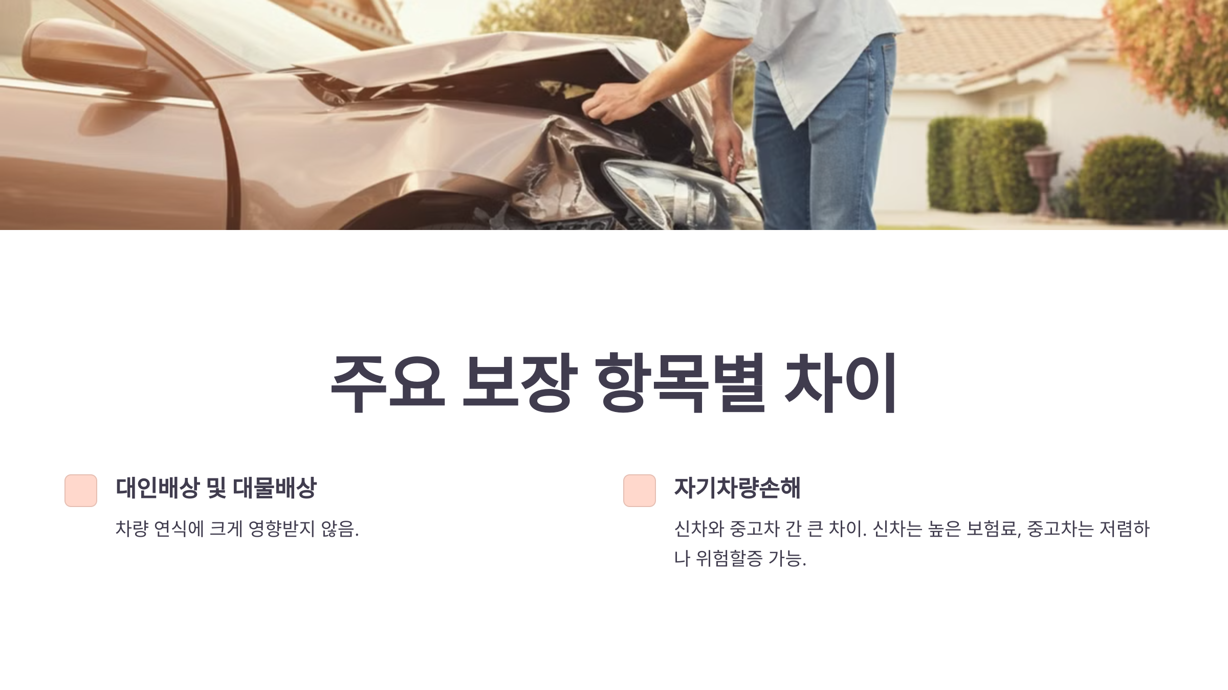 대인배상과 대물배상의 기본 보험료는 차량의 연식에 크게 영향을 받지 않습니다. 하지만 자기차량손해 보험료는 신차와 중고차 간에 큰 차이를 보입니다. 신차는 높은 차량가액으로 인해 자기차량손해 보험료가 높게 책정되며, 신차가액 보상특약 등으로 인해 추가 보험료가 발생합니다. 중고차는 차량가액이 낮아 기본 보험료는 저렴하지만, 부품 수급의 어려움으로 인한 위험할증이 적용될 수 있습니다.