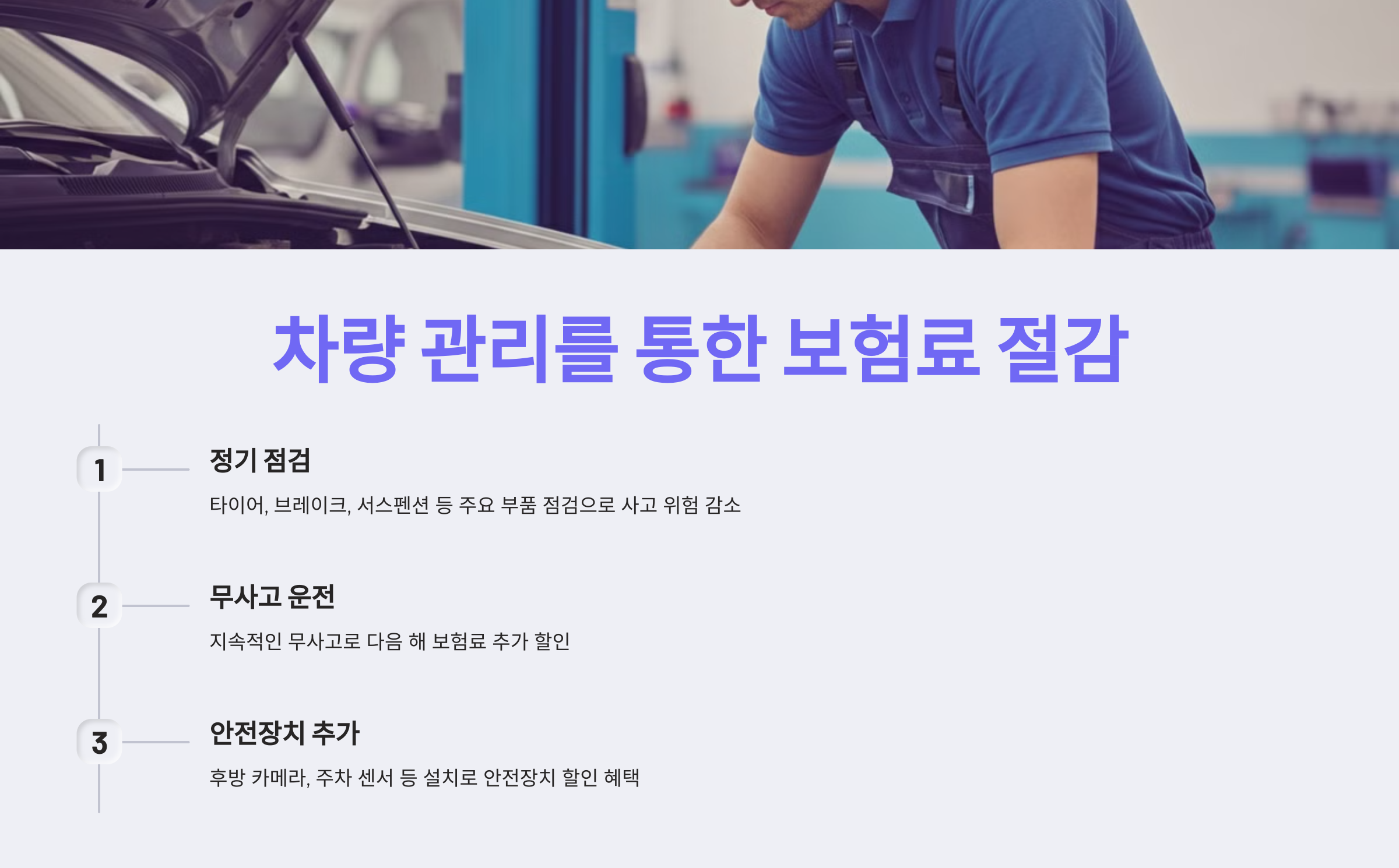 A: 일부 보험사는 정기적인 정비이력을 증빙하면 추가 할인을 제공합니다. 특히 주요 안전장치의 정비이력이 중요합니다.