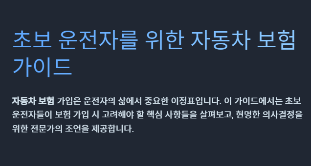 처음 자동차 보험을 가입하는 순간은 운전자의 삶에서 중요한 이정표가 됩니다. 적절한 자동차 보험 선택은 예기치 못한 사고로부터 우리의 재정을 보호하는 필수적인 안전장치입니다. 이 가이드에서는 초보 운전자들이 보험 가입 시 고려해야 할 핵심 사항들을 상세히 살펴보고, 현명한 의사결정을 위한 전문가의 조언을 제공합니다.